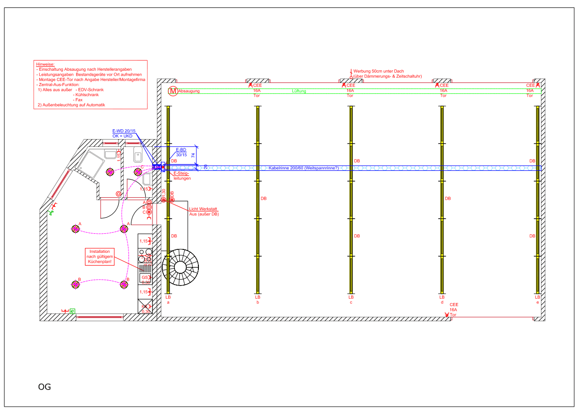 Elektroplanung für ein Einfamilienwohnhaus, Doppelhaus oder Doppelhaushälfte, Reihenhaus, Mehrfamilienwohnhaus, einzelne Wohnungen oder Gewerbeeinheiten, Arztpraxen, komplette Wohnanlagen, Büro-, Gewerbe- oder Industriegebeäude, Produktions- und Lagerhallen, Krankenhäuser, Schulen, Kirchen, Kfz-Werkstatt, und, und, und... alles wurde schon von mir revidiert oder gezeichnet.