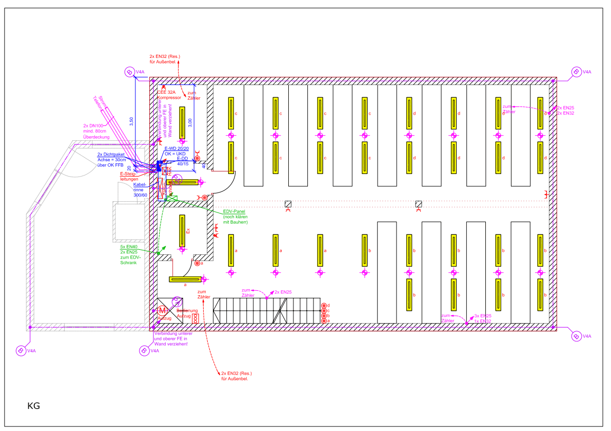 Auch Detailpläne wie zum Beispiel für die Standardinstallation mit Höhenangaben, Steigschächte und Verteileransichten, Kabelschächte, Trafostationen, sonstige Schnitte und Ansichten, usw., sollen dargestellt werden?
